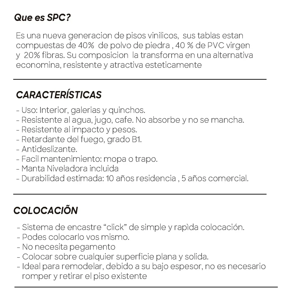 RESISTENCIA - Al agua, vuelcos de jugos, café, etc. No absorbe y no se mancha. - Impactos y pesos.