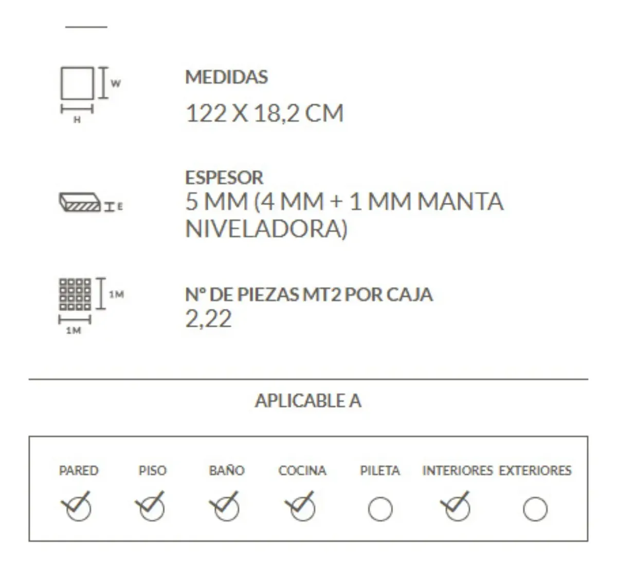 MEDIDAS : 122 x 18,2 cm M2 POR CAJA: 2,22