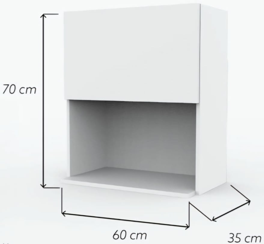 - Dimensiones: Con unas medidas de 60 cm de ancho, 70 cm de alto, y 35 cm de profundidad, esta alacena está diseñada para acomodar un microondas, proporcionando un espacio dedicado que ayuda a mantener la cocina organizada y libre de desorden.