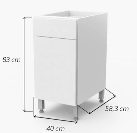 - Dimensiones: Con un ancho de 40 cm, altura de 83 cm, y profundidad de 58,3 cm, este bajo cajonera es ideal para aprovechar espacios más reducidos en la cocina.