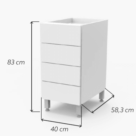 Bajo Mesada Cajonera para Cocina 4 Cajones Blanca, Ancho 40 cm